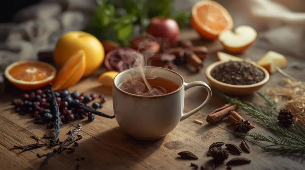 私は、夜にはバニラやキャラメル風味のフレーバードティーや、